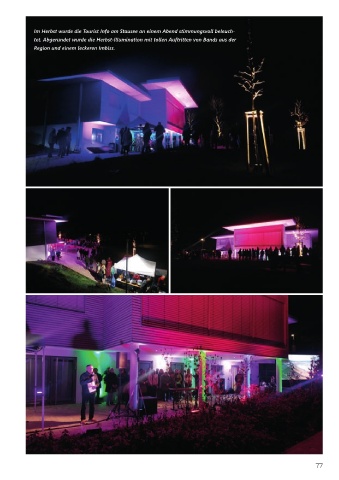Im Herbst wurde die Tourist Info am Stausee an einem Abend stimmungsvoll beleuch- tet. Abgerundet wurde die Herbst-Illumination mit tollen Auftritten von Bands aus der Region und einem leckeren Imbiss. 77